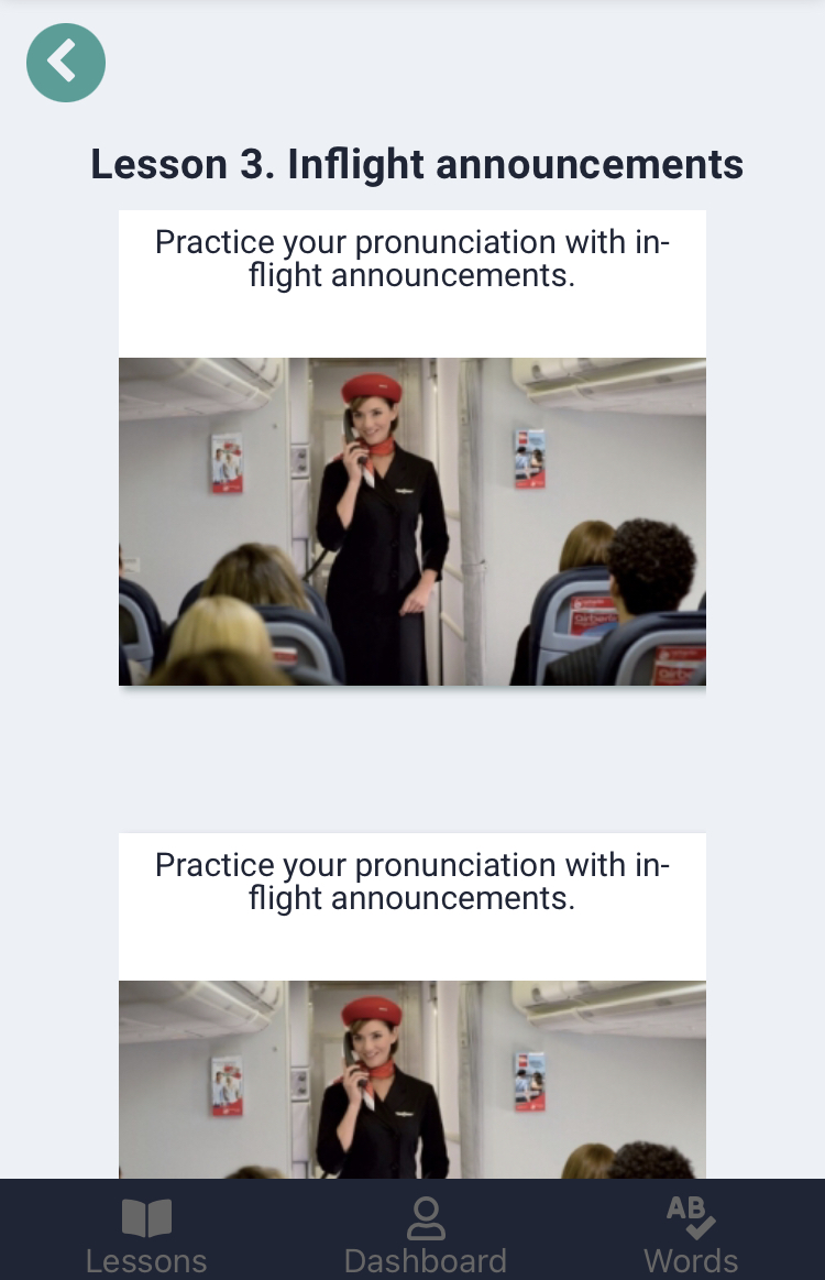 Practicing with the program enhances communication skills for flight attendants flying for an airline company nationally or internationally or even for students who are upgrading their career for a new challenge.